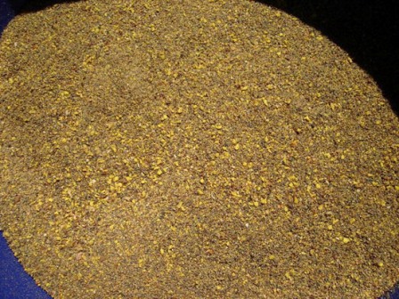Alapként a Milo VIP Magicet választottam. Ez egy finom, apróra darált alkotóelemekből álló keverék, amelyet a fenéken táplálkozó halaknak szántak főként – ponty, kárász, dévér. Nincs semmiféle meghökkentő vagy különlegesen vonzó aromája, attól jó ami ténylegesen benne is van, finoman pörkölt olajos magvak. Kis részben tartalmaz jojózó alkotórészeket, amik mondjuk feederkosárban is jól jönnek. Sárga angolmorzsa is található benne nagyobb arányban a mohóbb és rámenősebb halak helyben tartására.