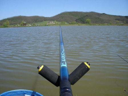 Csúzlival lövök egy komolyabb adag pelletet és csemegekukoricát, hátha egy pontycsapat tévedt be reggelizni. Rásandítok a közelemben lévő 1.6os gumira és a 18as zsinórból készített szerelékekre, gondolatban már látom is, hogy néhány erőteljes szakítás után felszerelem ezeket a kajak cuccokat. A pontyok itt vannak fogok is 5-6 darabot, de sajnos mind pár centivel a méret alul marad, jól küzdenek, de a 10es előke bőven elegendő a megzabolázásukhoz. Köztük beékelődik néhány szebb kárász, bizonyítván, hogy ők gyakran bandáznak együtt.